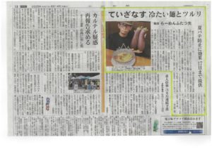 媒体:中日新聞(全県版) 商品:夏色涼麺 販売店舗:ふたつ矢 掲載日:8月14日